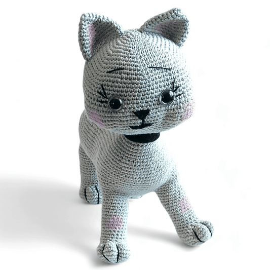 El Yapımı Gri Amigurumi Örgü Kedi – Sevimli ve Yumuşak Oyuncak Kedi