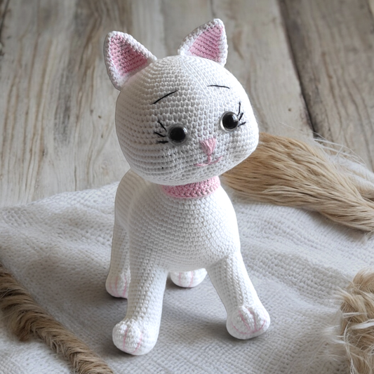 El Yapımı Beyaz Amigurumi Örgü Kedi – Sevimli ve Yumuşak Oyuncak Kedi