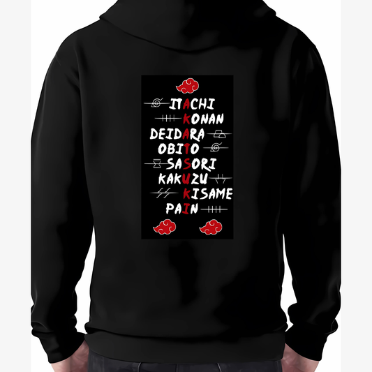 Naruto Akatsuki Ön ve Arka Yüzü Baskılı Kapüşonlu Sweatshirt - Pamuk