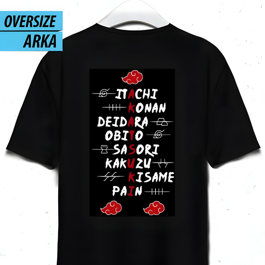 Naruto Akatsuki Oversize Ön ve Arka Yüzü Baskılı T-Shirt
