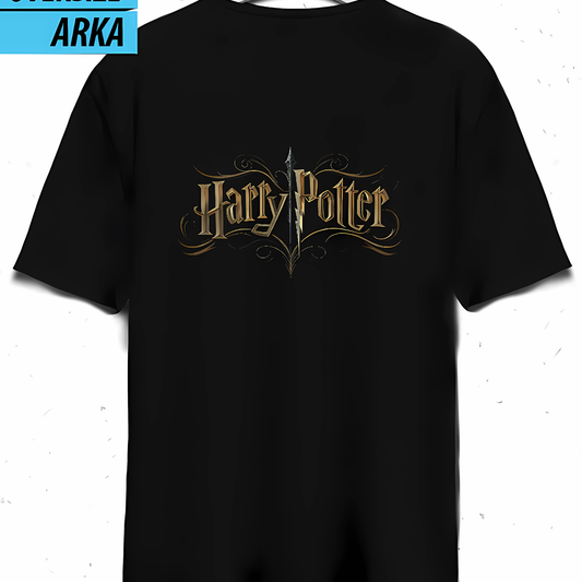 Renkli Harry Potter Oversize Ön ve Arka Yüzü Baskı T-shirt - %100 Pamuk