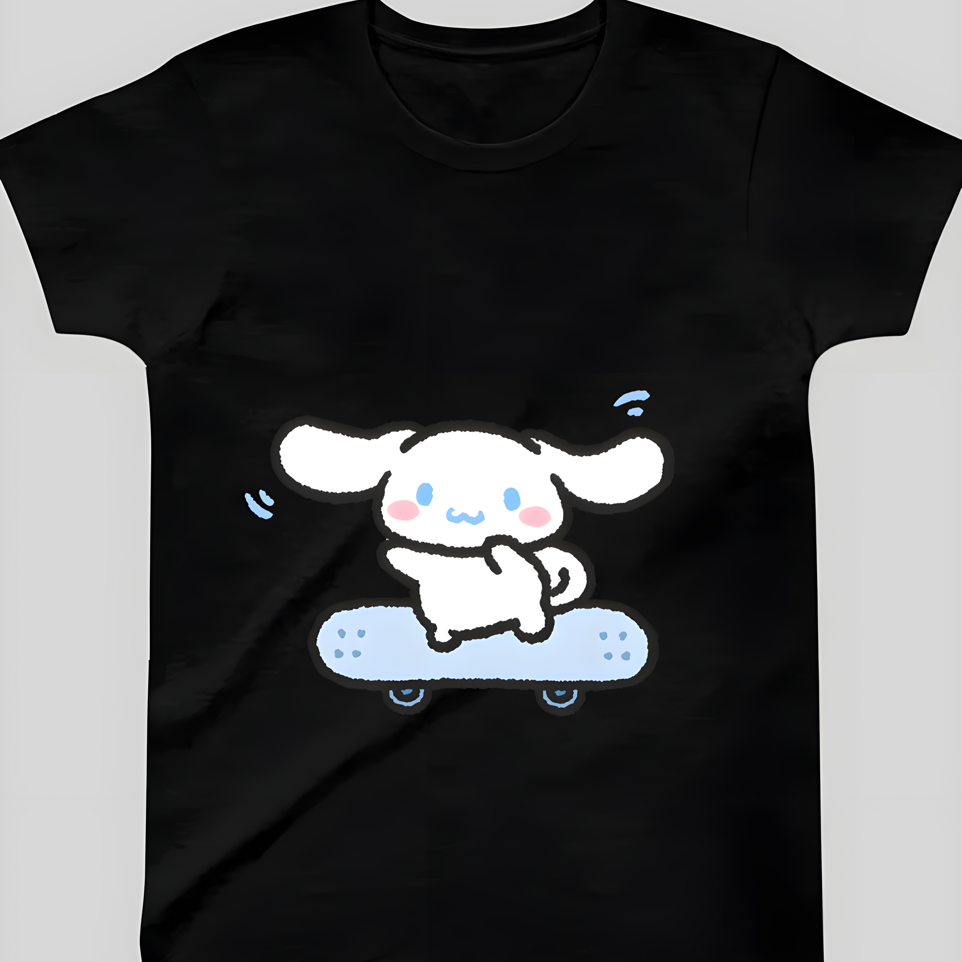 Cinnamoroll kaykayıyla sokaklara çıkmaya hazır! Bu özel tasarım tişört ile günlük stilini renklendirebilirsin. Yumuşak pamuklu kumaşı ve canlı renkleriyle hem rahat hem de şık bir görünüm sunar. Üzerindeki sevimli Cinnamoroll baskısıyla her zaman dikkatleri üzerine çekeceksin.