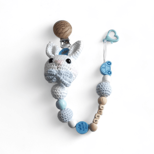 İsimli Ahşap Emzik Zinciri - Mavi