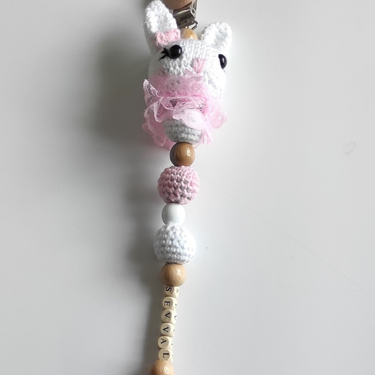 İsimli Ahşap Emzik Zinciri - Pembe